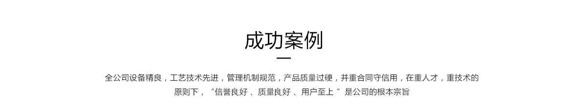 全公司設備精良,管理機制規(guī)范,產(chǎn)品質(zhì)量過硬,并重合同守信用,在重人才,重技術的原則下,“信譽好 、質(zhì)量標準 、用戶至上 ”是公司的根本宗旨。公司上下,團結一致,把不斷完善并持續(xù)改進質(zhì)量管理體系作為公司永恒的追求。